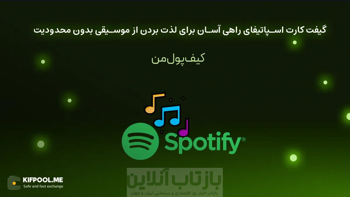 اگر شما هم به دلیل تحریمها تاکنون موفق به خرید اشتراک پرمیوم اسپاتیفای نشدهاید، توصیه میکنیم همین حالا سری به وبسایت صرافی کیف پول من به آدرس www.kifpool.me بزنید؛ مجموعهای که دارای پشتیبانی 24 ساعته واقعی بوده و بستری را برای پرداخت ریالی هزینه گیفت کارت اسپاتیفای با کمترین میزان کارمزد ممکن، فراهم کرده است.